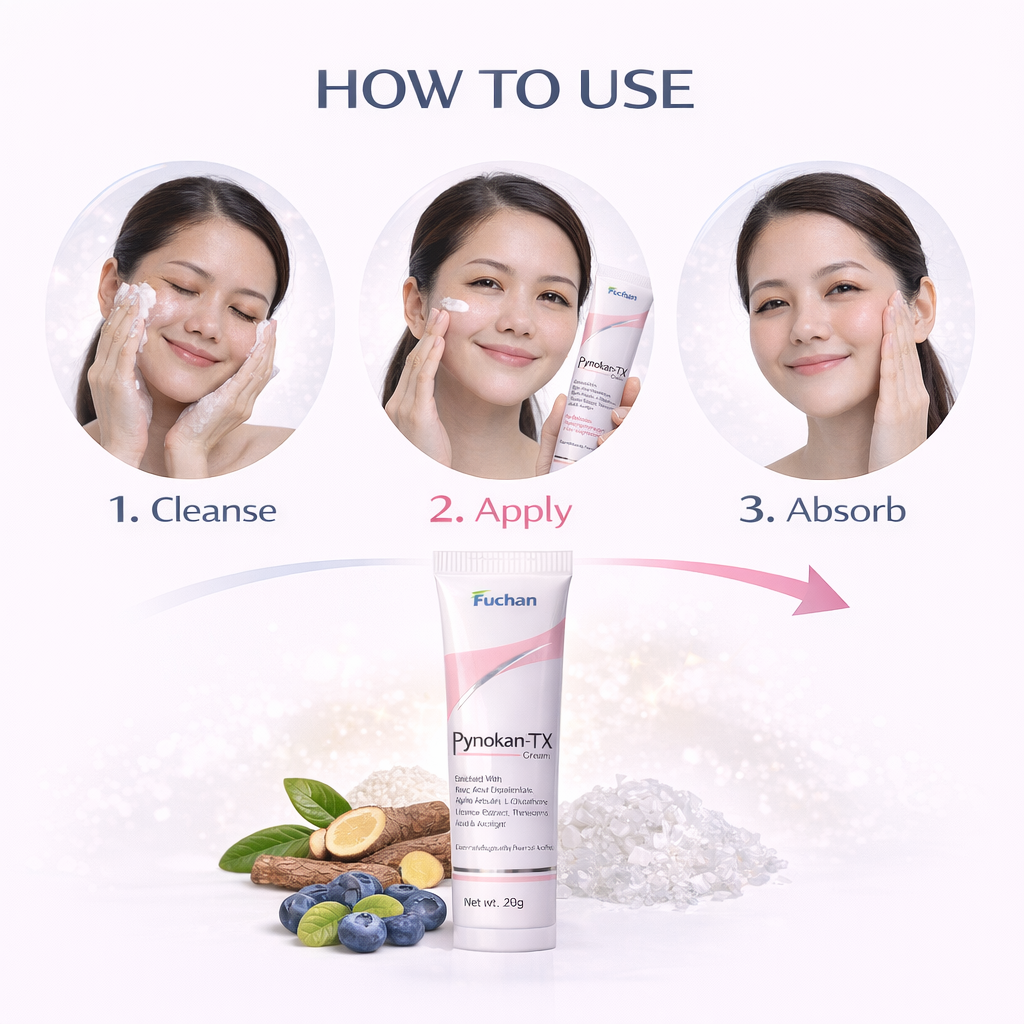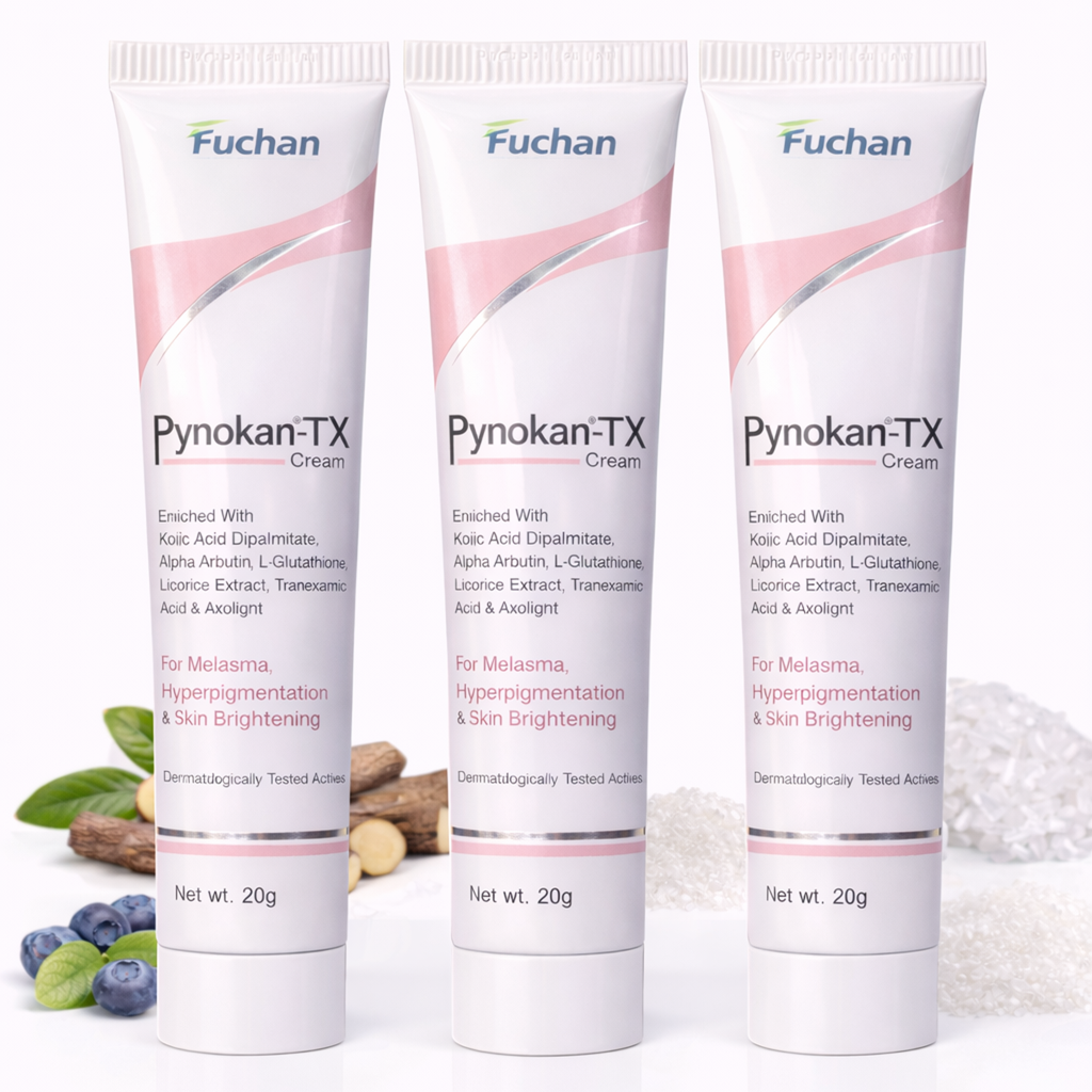 Fuchan Pynokan-TX Cream is an advanced skin-brightening formulation designed to effectively target melasma, hyperpigmentation, dark spots, and uneven skin tone. Powered with a scientifically balanced combination of Kojic Acid Dipalmitate, Alpha Arbutin, L-Glutathione, Licorice Extract, Tranexamic Acid, and Axolight, it helps reduce excess melanin production and promotes clearer, brighter skin.